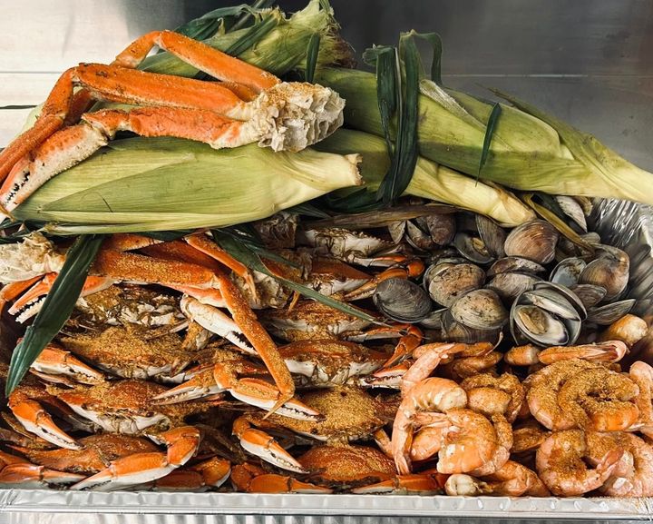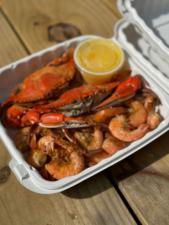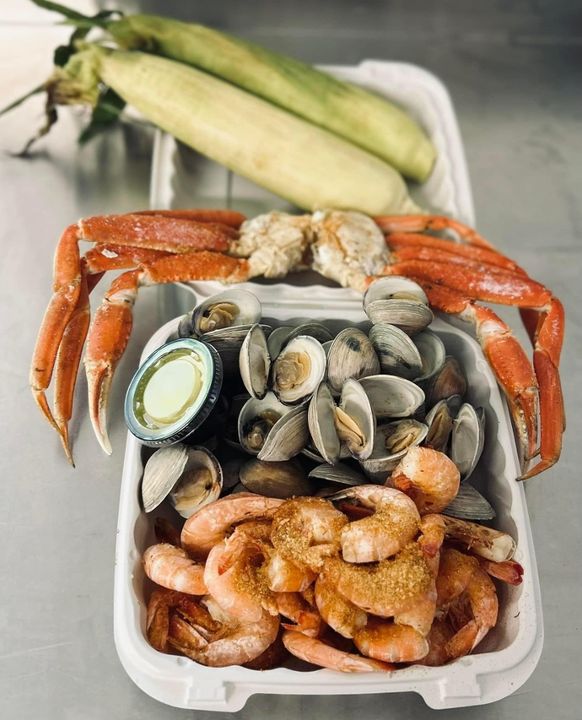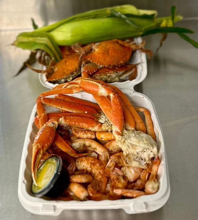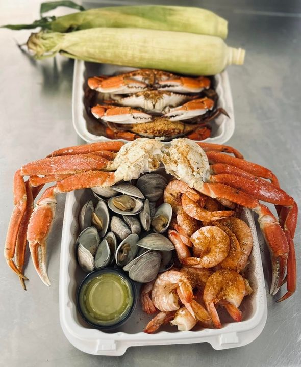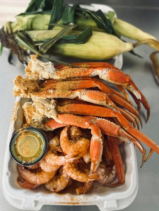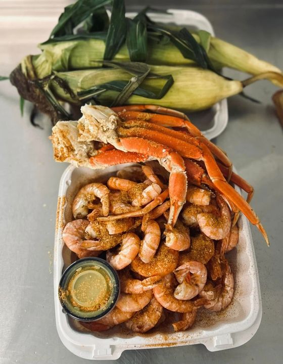 6 crabs, 1LB of shrimp, 2 snow crab clusters, & 2 ears of corn